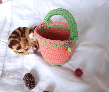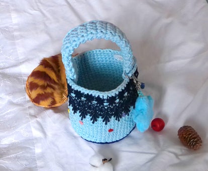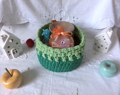 Panier original , organisateur pour réceptionnner maquillage, outils de crochet, bijoux , pour rangement fondants ou de sert à tout