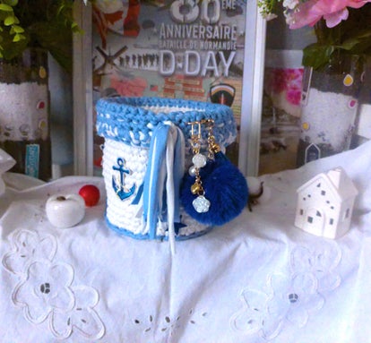 Panier original façon marin , organisateur pour réceptionnner maquillage, outils de crochet, bijoux , pour rangement fondants ou de sert à tout