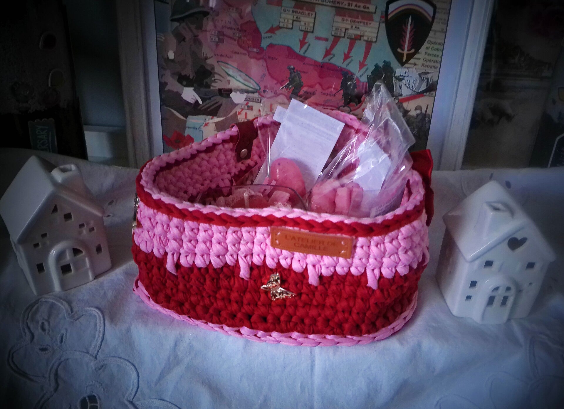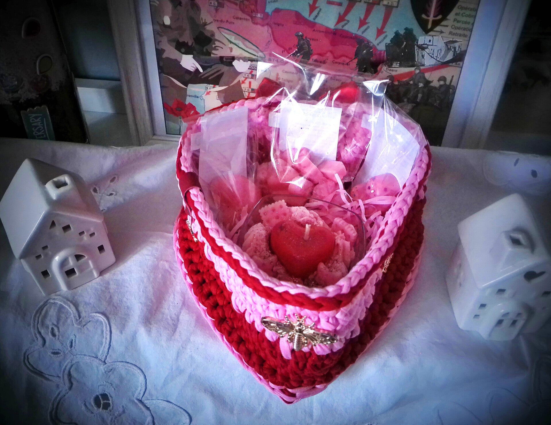 PANIER TAILLE M GARNI BOUGIE, FONDANTS ET 2 GROS COEURS