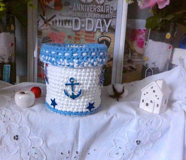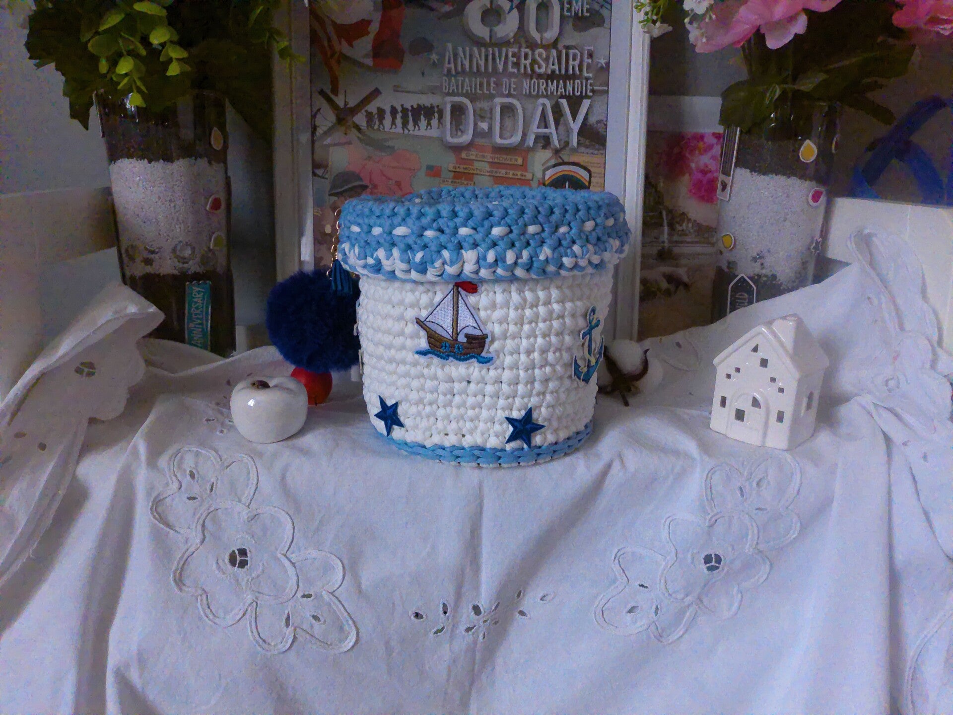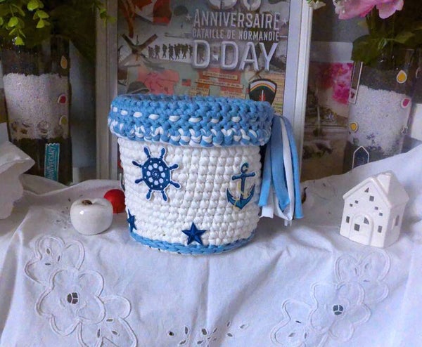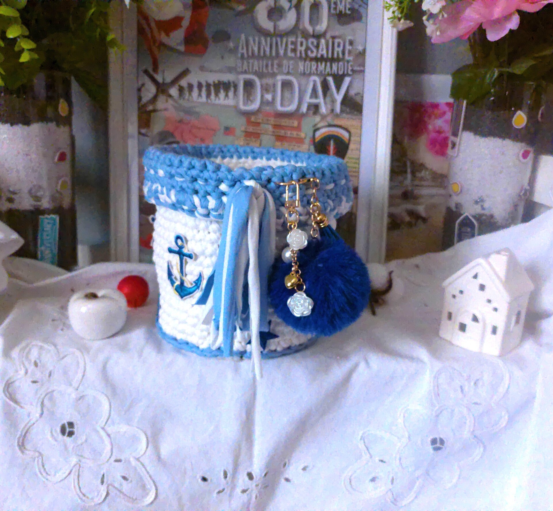 Panier original façon marin , organisateur pour réceptionnner maquillage, outils de crochet, bijoux , pour rangement fondants ou de sert à tout