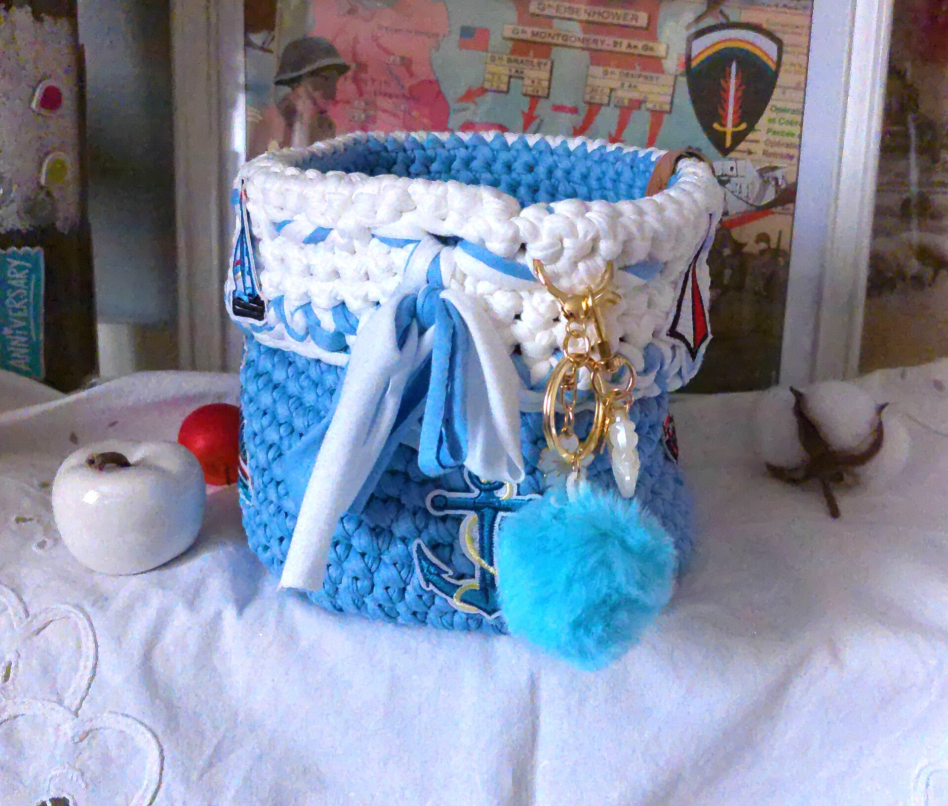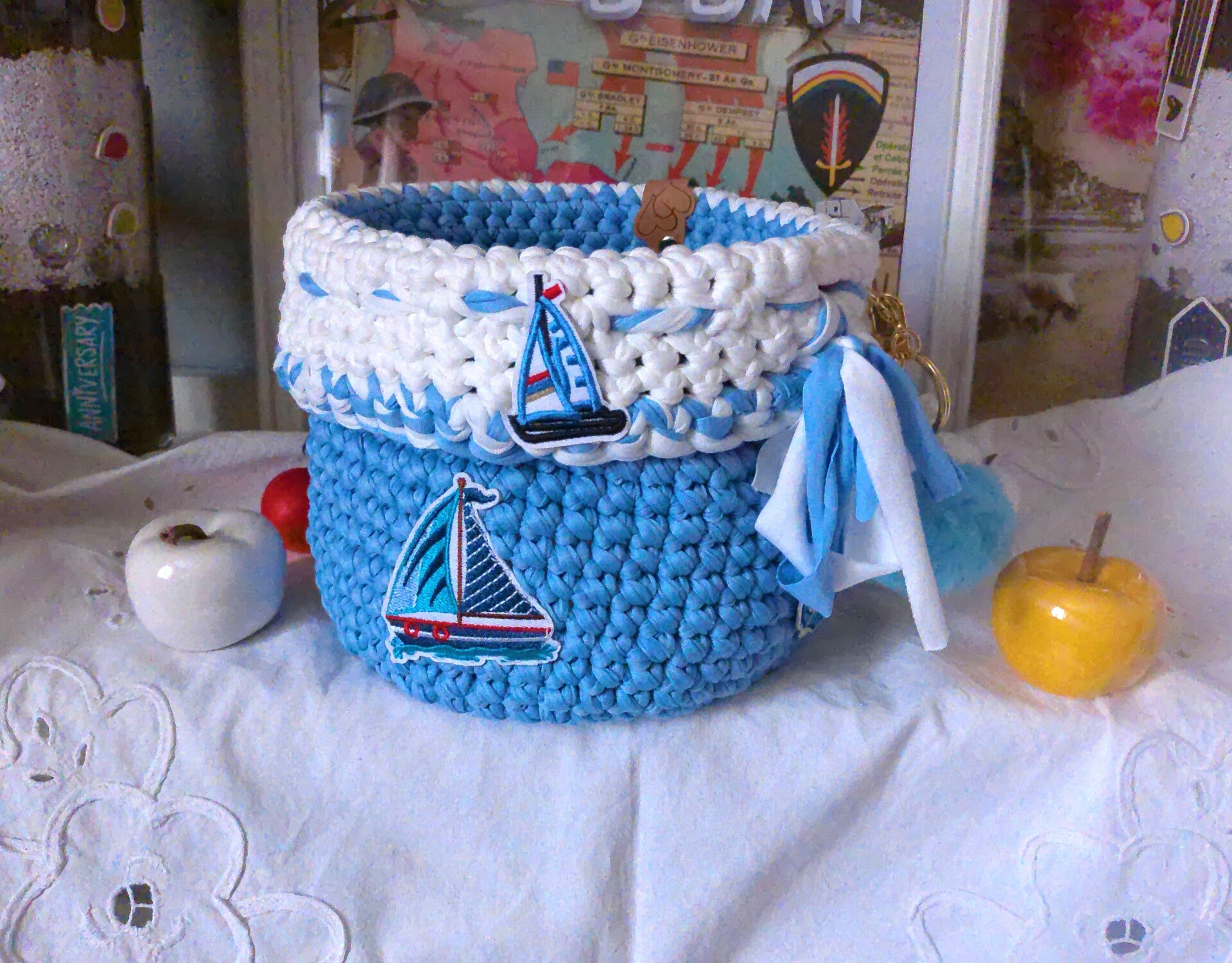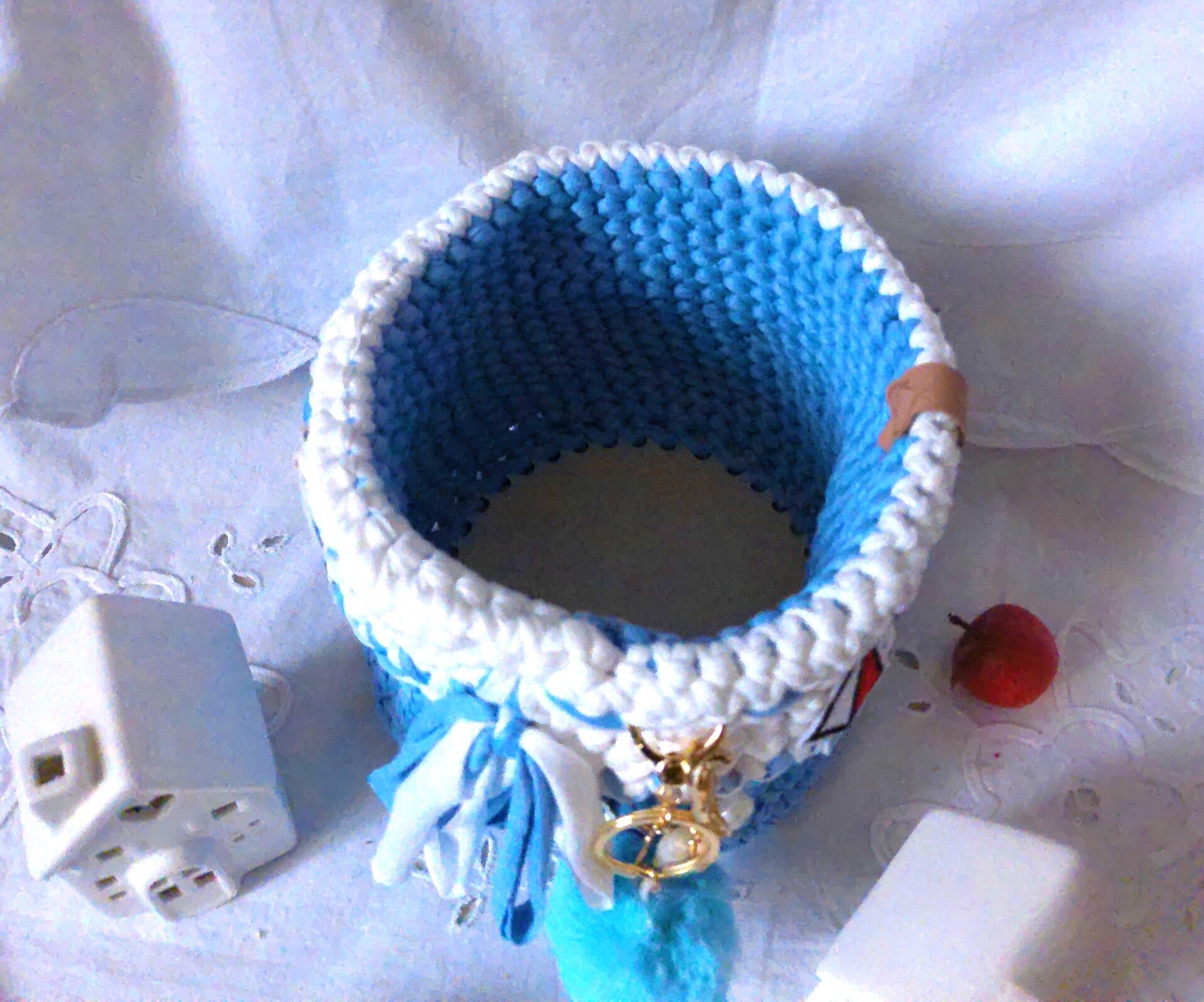 Panier original , organisateur pour réceptionnner maquillage, outils de crochet, bijoux , pour rangement fondants ou de sert à tout
