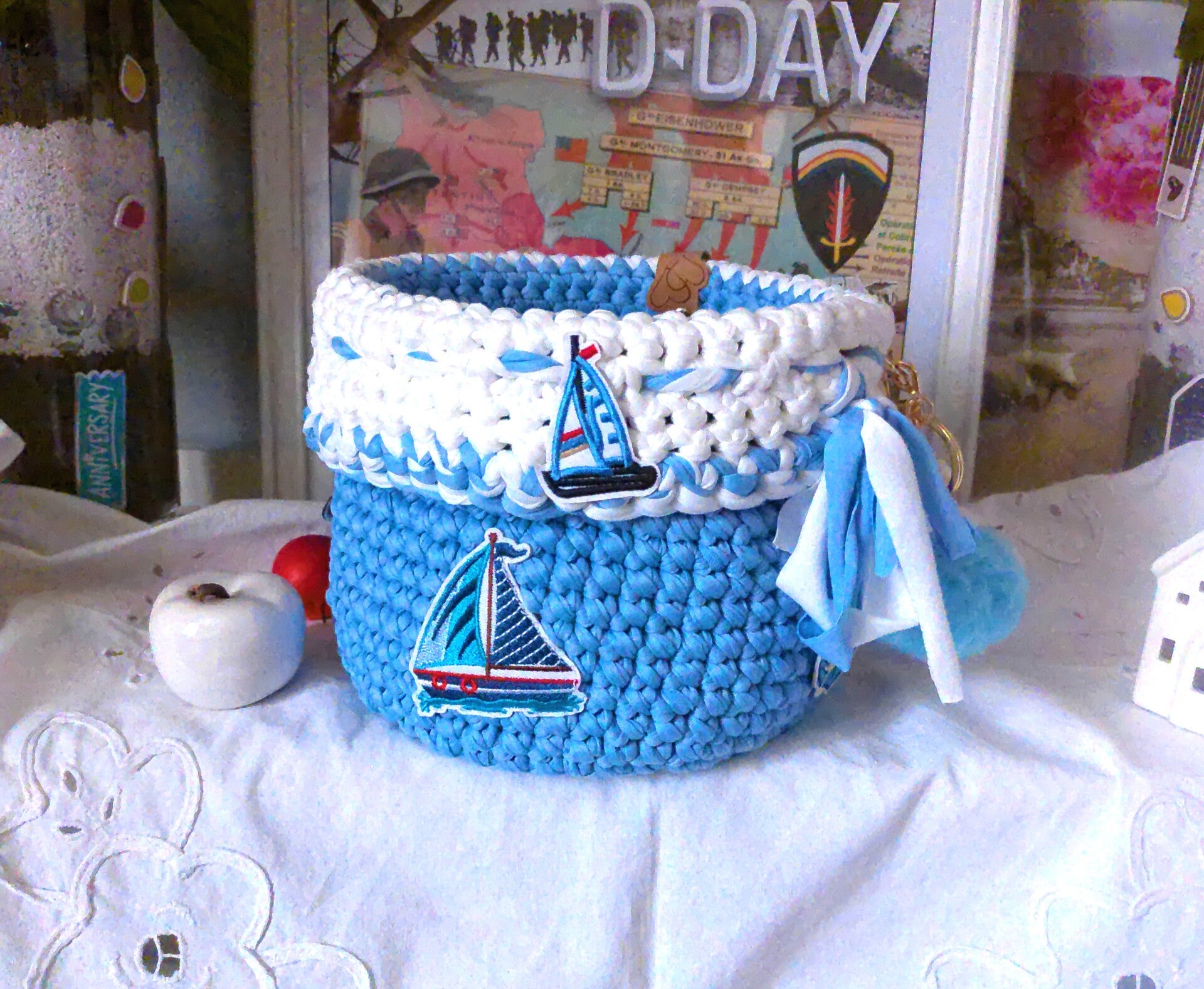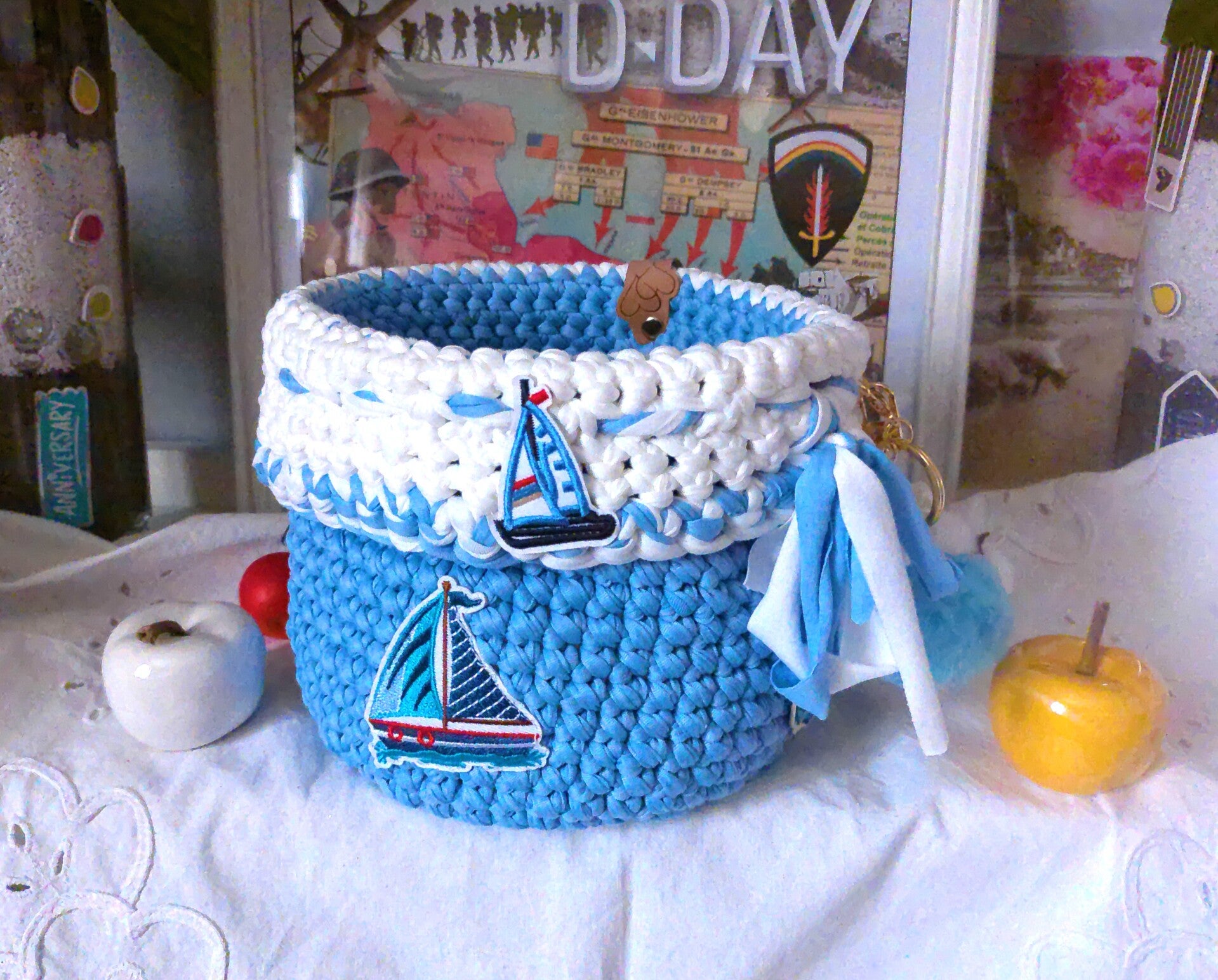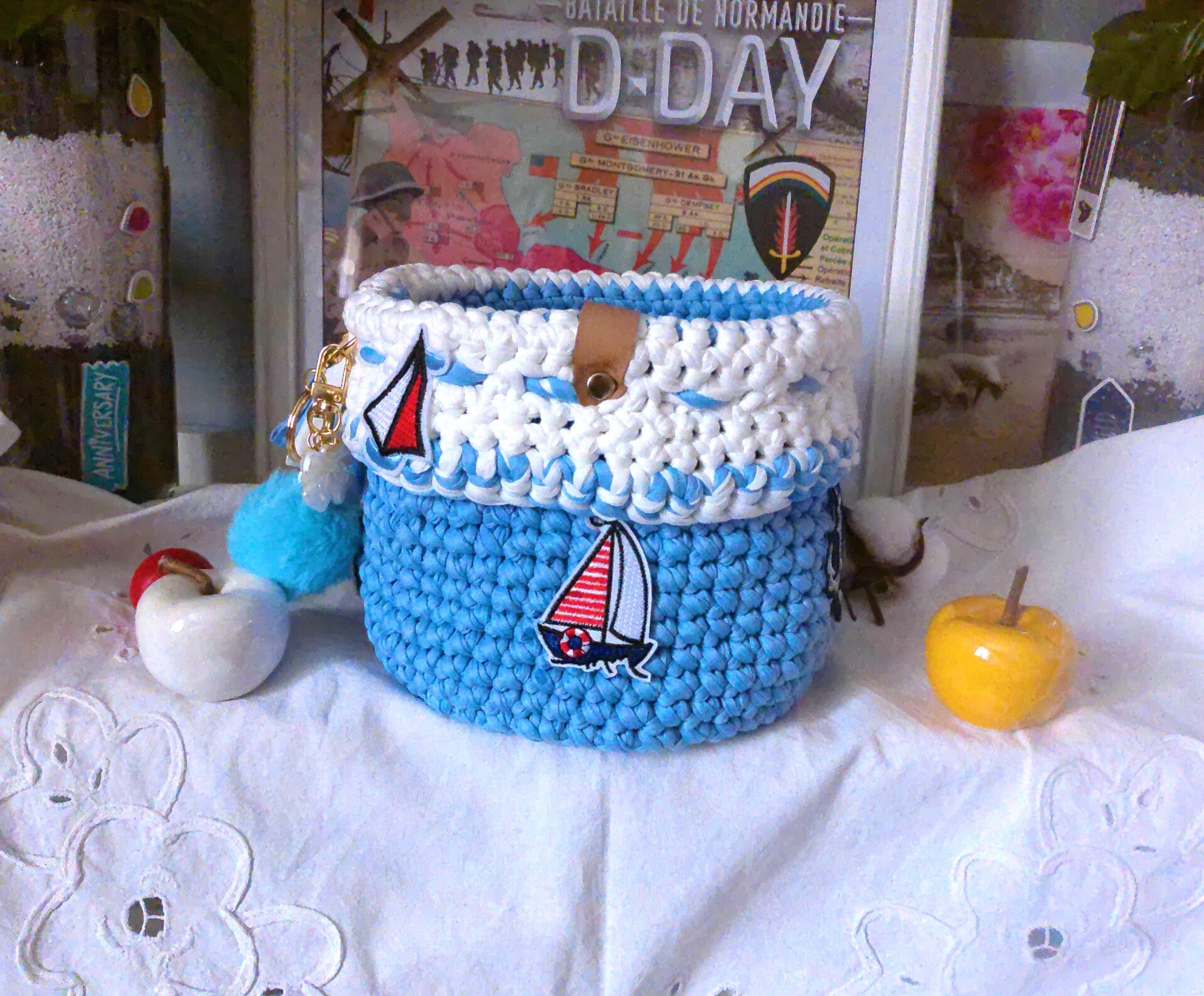 Panier original , organisateur pour réceptionnner maquillage, outils de crochet, bijoux , pour rangement fondants ou de sert à tout
