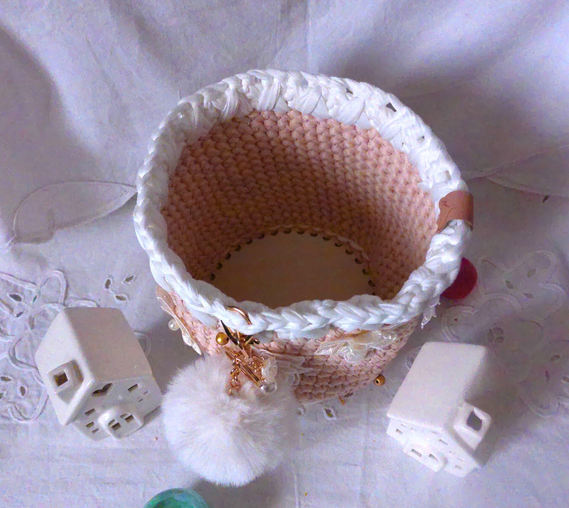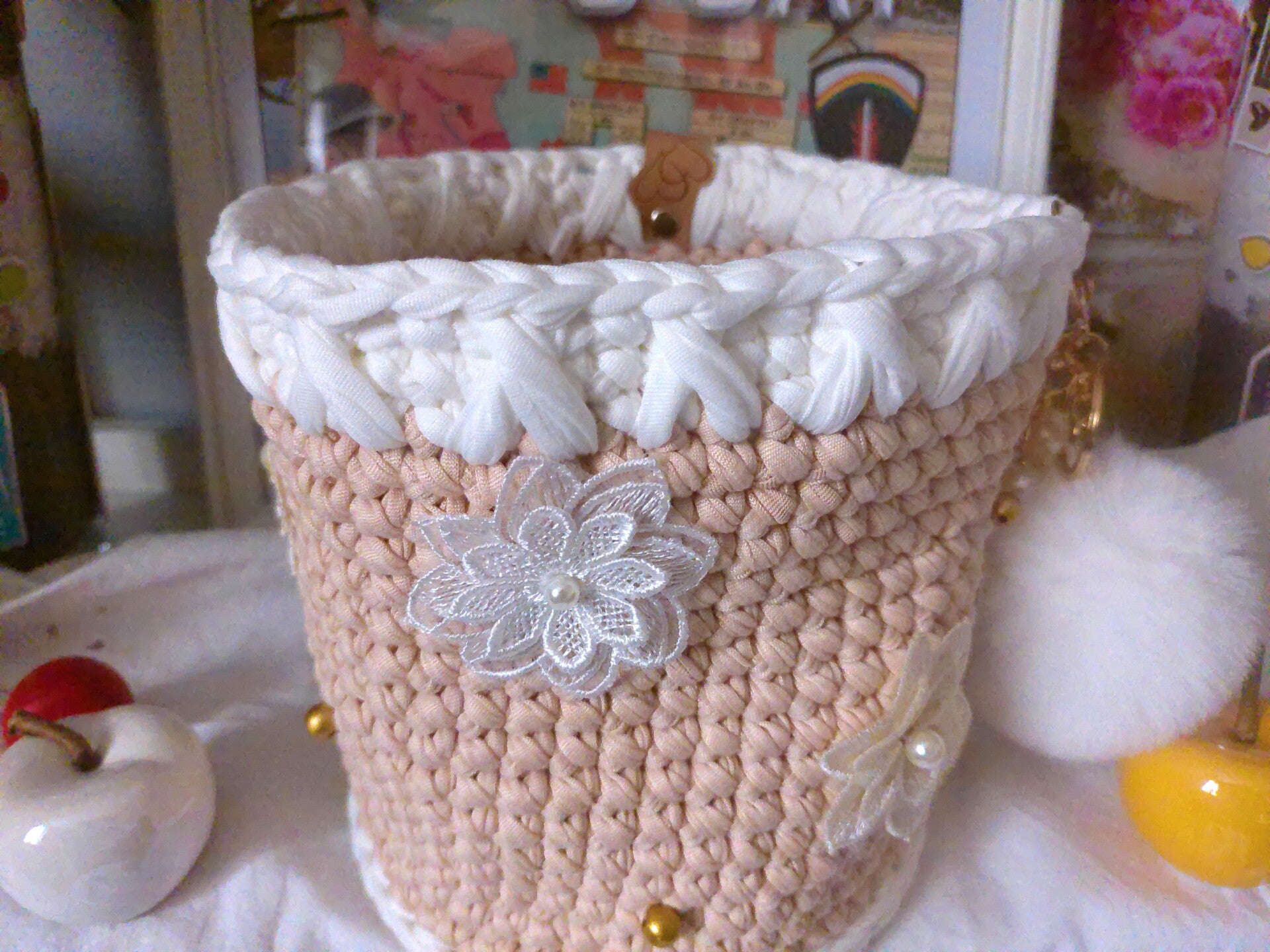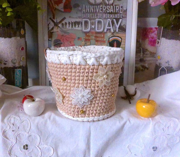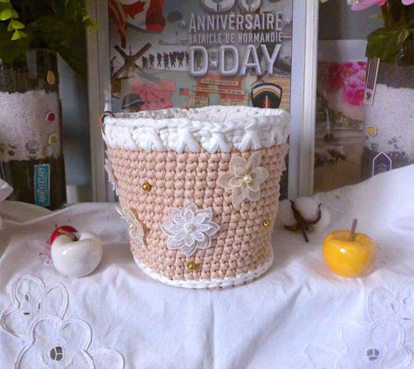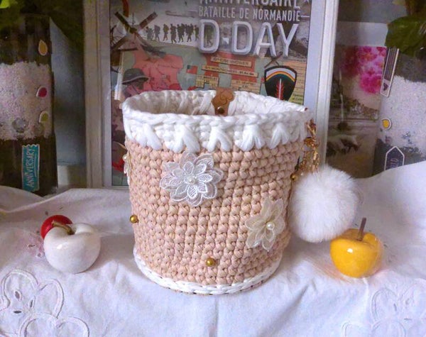 Panier original , organisateur pour réceptionnner maquillage, outils de crochet, bijoux , pour rangement fondants ou de sert à tout