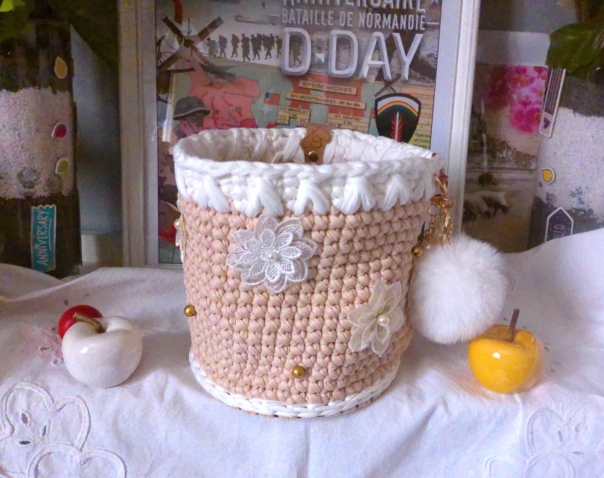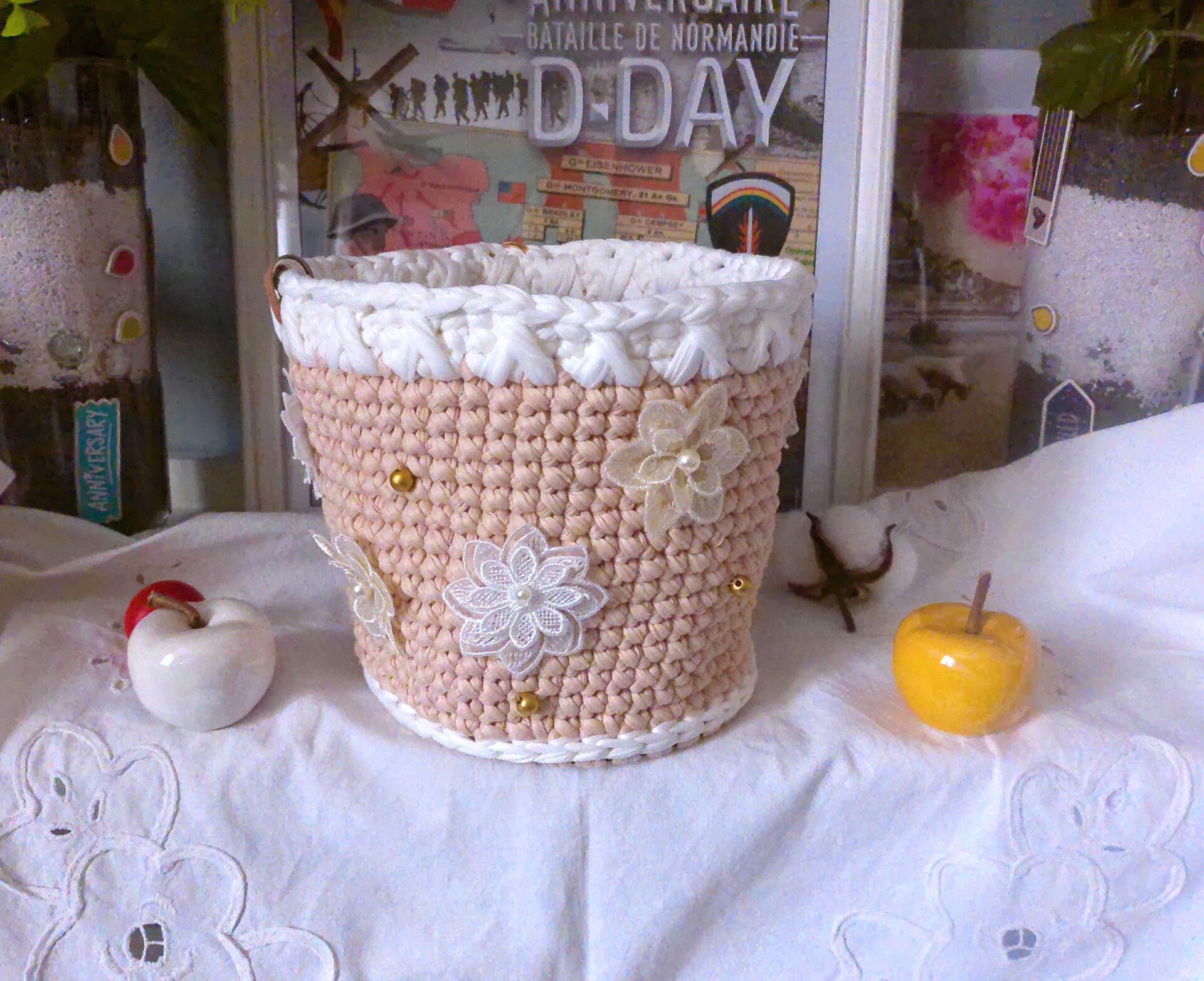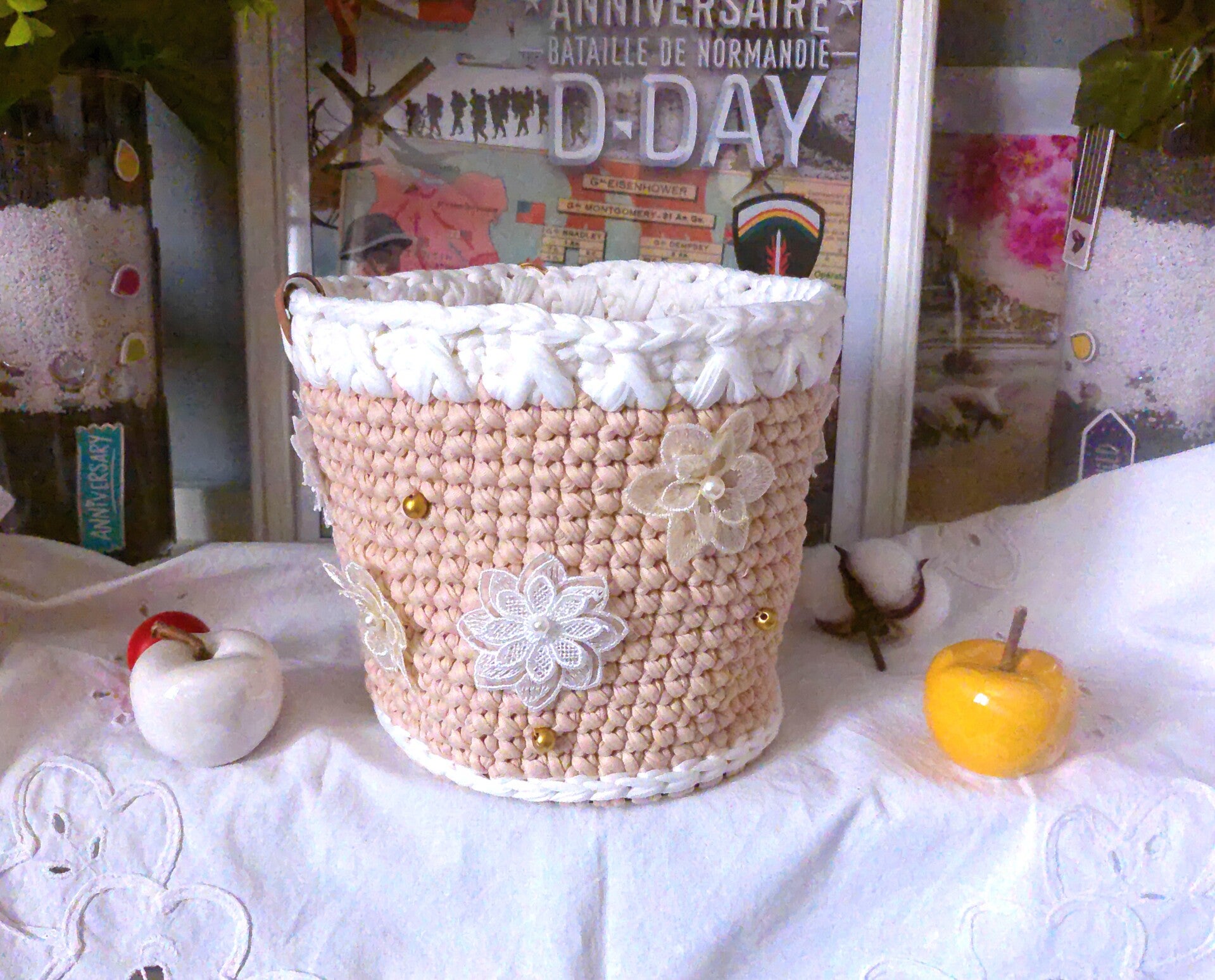 Panier original , organisateur pour réceptionnner maquillage, outils de crochet, bijoux , pour rangement fondants ou de sert à tout