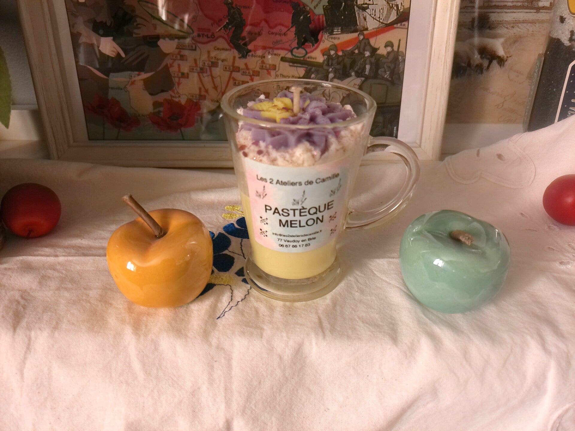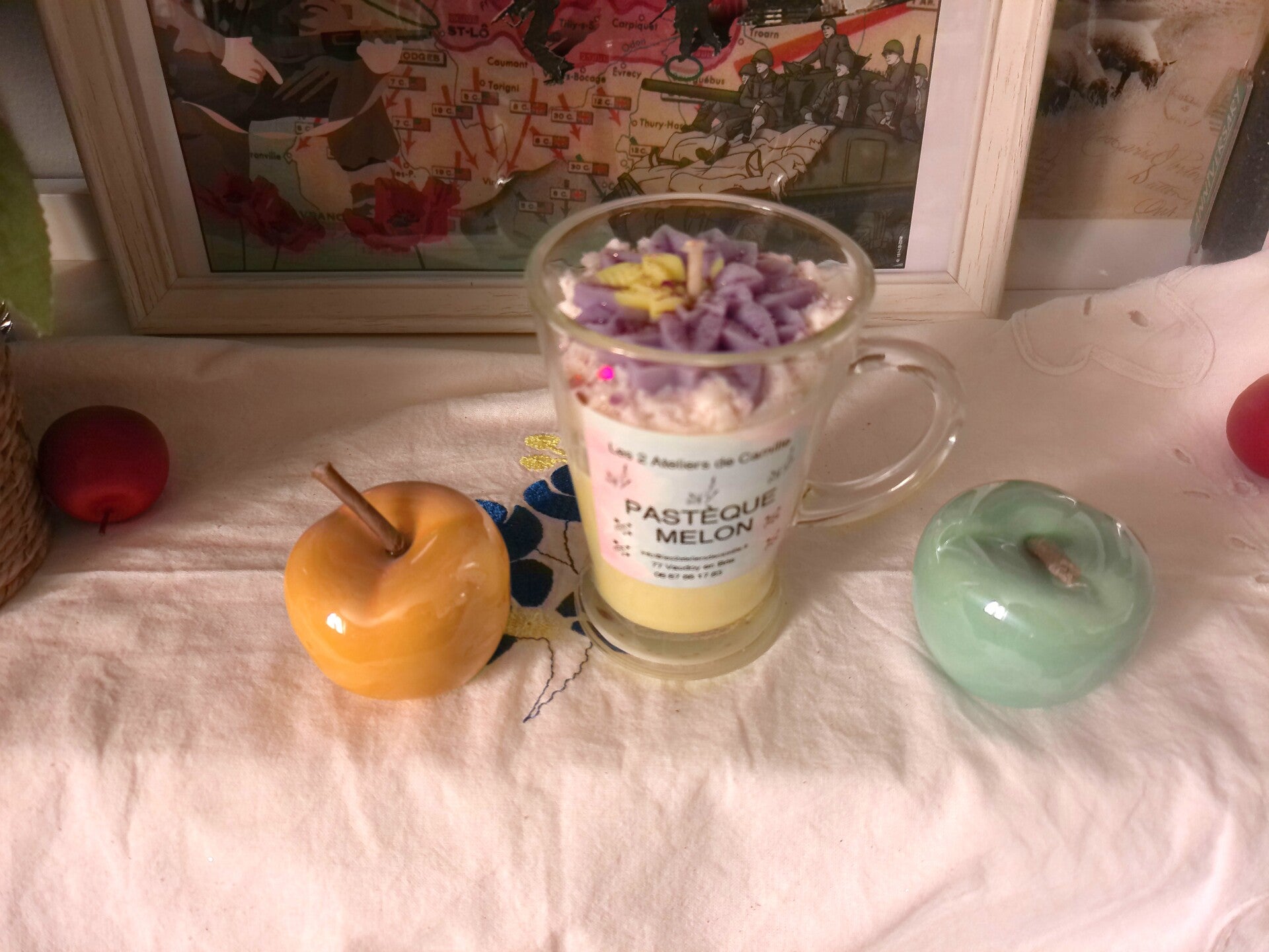 La cire de soja a été utilisé pour la fabrication de la bougie chop avec le parfum Pasteque Melon, parfum de Grasse.