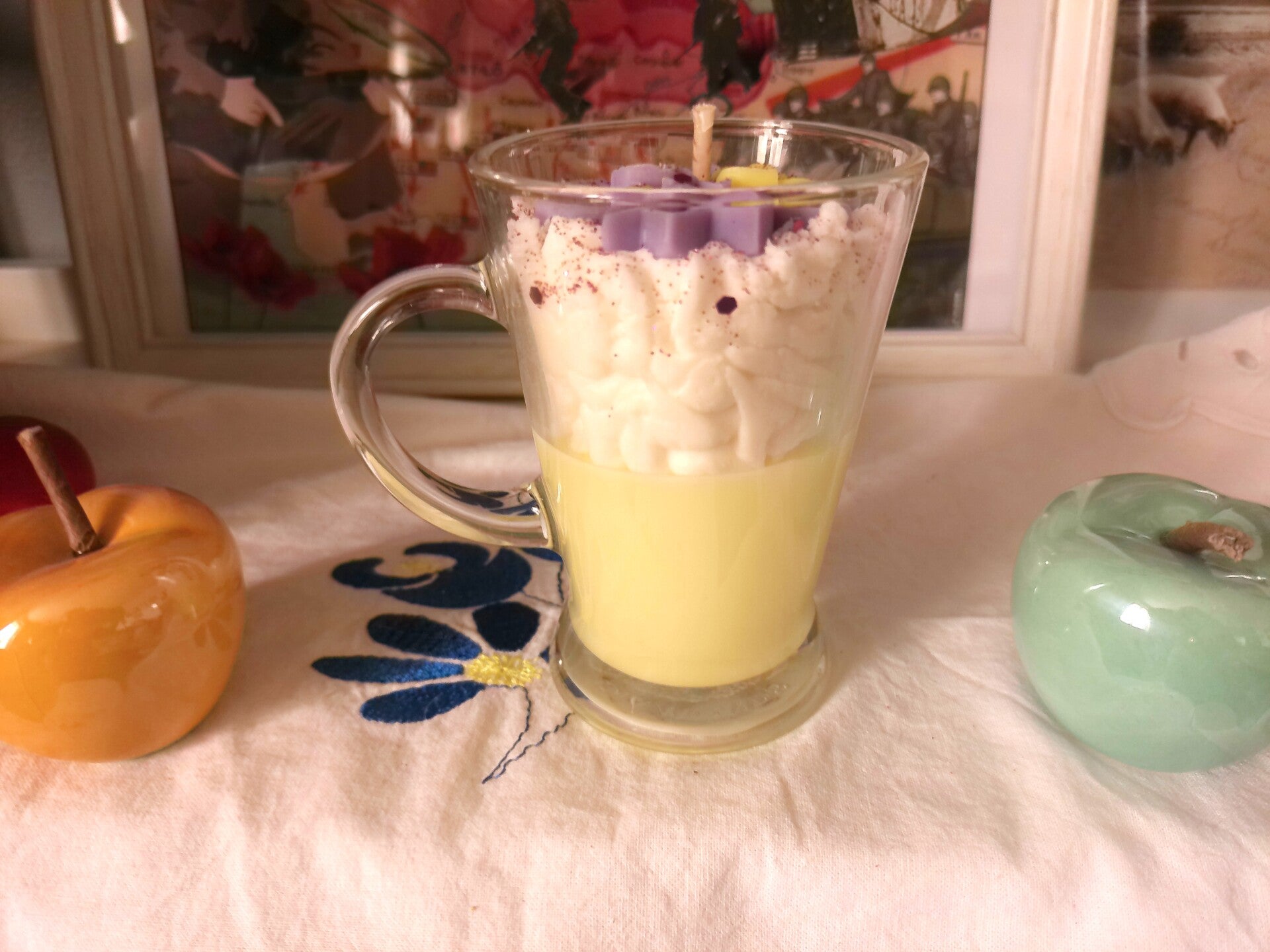 La cire a été coulé dans une verre capacité +/- 16 cl réutilisable.